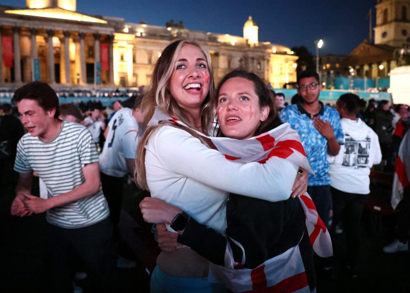 কোনো বড় টুর্নামেন্টে ইংল্যান্ডের জয় মানেই ‘ফুটবলের ঘরে ফেরা’। তারা খেলাটির জনক বলেই এই কথা বলে থাকেন অনেকেই। চলমান ইউরো চ্যাম্পিয়নশিপের ফাইনালে পৌঁছে গেছে গ্যারেথ সাউথগেটের দল। এবার ফাইনালে ইতালিকে হারাতে পারলেই ৫৫ বছর পর কোনো বড় টুর্নামেন্টের শিরোপা ঘরে তুলবে ইংল্যান্ড। ফুটবলের বড় শিরোপা ঘরে ফেরানোর স্বপ্নে আনন্দে ভাসছে ইংলিশ ভক্তরা। ছবি : রয়টার্স